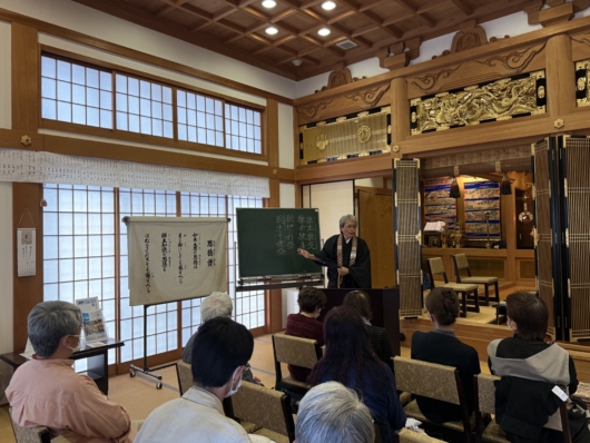 柔らかな口調で、親鸞聖人の御生涯と、阿弥陀さまの救いについて、正信偈の偈文を用いながら、丁寧にお話していただきました。