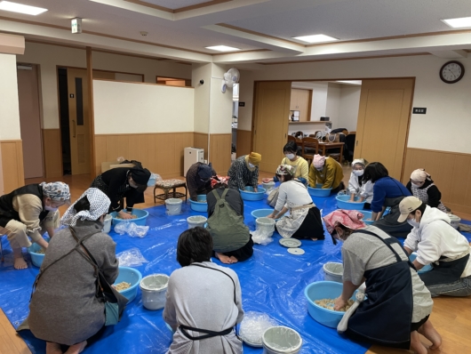 講師は、那珂組一心寺門徒の白垣寛子さんです。お味噌作りの後は、先生手作りの軽食もいただきます。